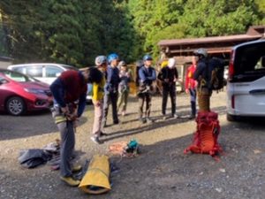9:30北尾根取り付きでマルチピッチ練習 → 10:00クライミング開始 → 12:00 山頂到着(昼食)→ 13:00懸垂下降開始 → 14:00ホワイトチムニーにてスポートクライミング開始 → 15:30下山