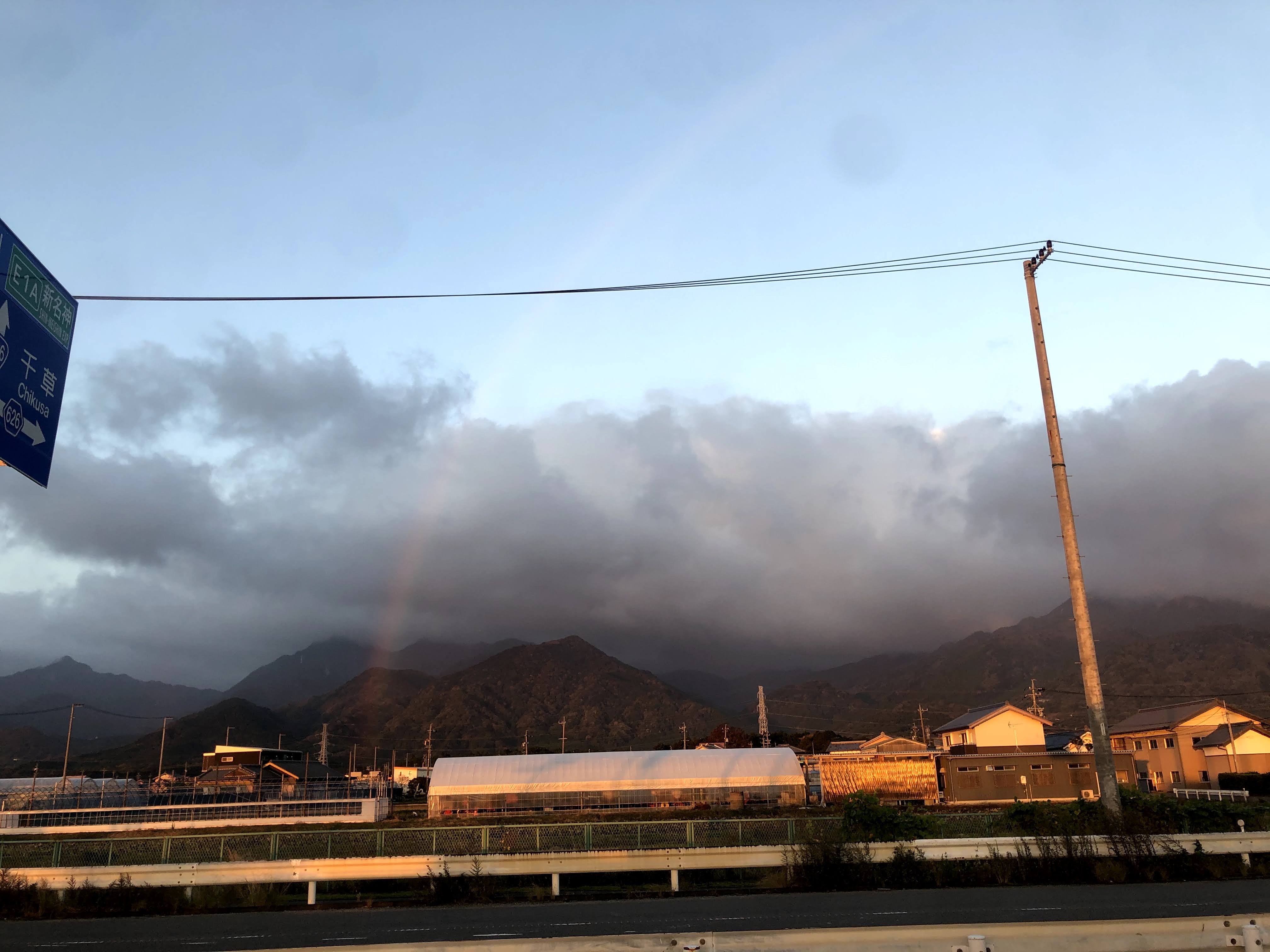 この日は予報に反して、朝からときおり霧雨が。御在所の上にも大きな雲がかかっていて不安な出だし。でも、大きな虹が出てて、これは吉兆の印や!と気持ちを奮い立たす。