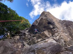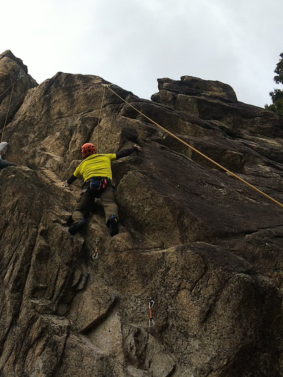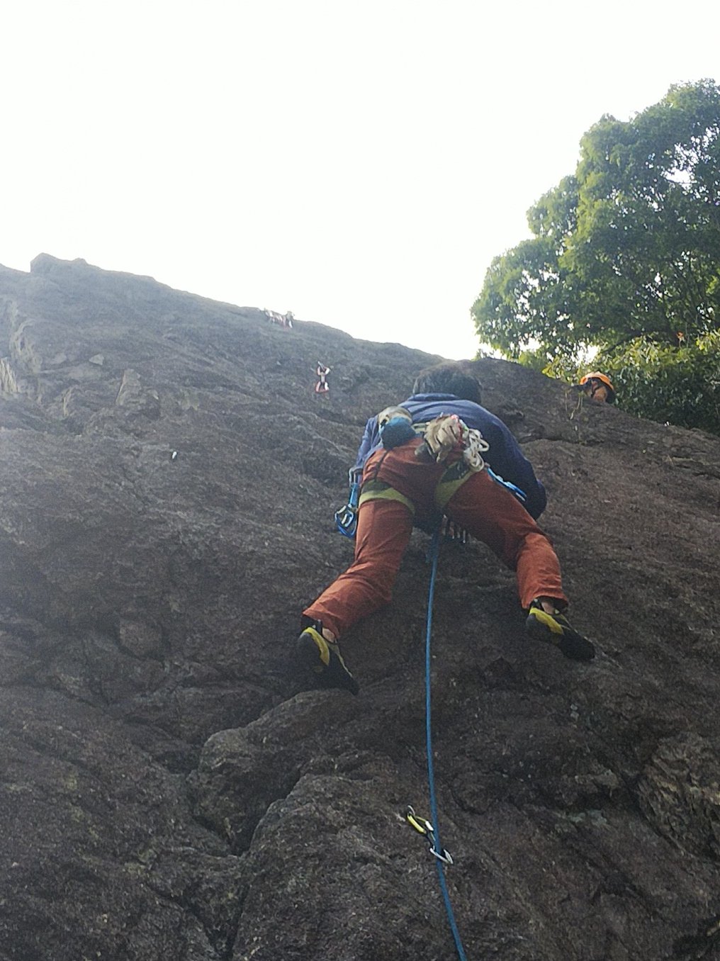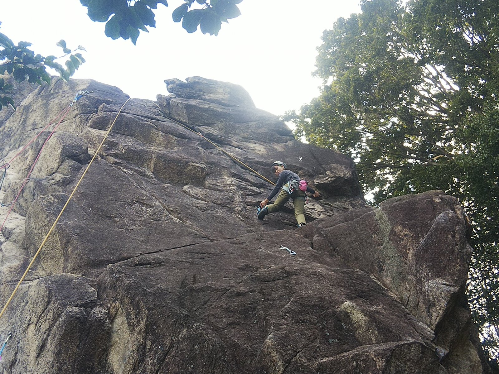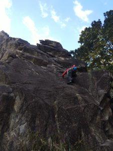本日、外岩デビューの新人Y本さんもトライ。普通なら初回はビビリまくりですが、そんな感じは全く無く、果敢に登られてました、途中までだけど、ガッツが嬉しい!!