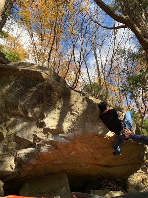 外岩のフリークライミングやマルチピッチは恐怖感が先行してしまい、軽く1週間は行くか行かないか迷うのですが、H籐さんからの「外岩ボルダリング行きませんか?」と言うお誘いには、気が付けば即「行きます」と回答していました。勿論ボルダリングにも危険性は大いにあるのですが、ある程度経験を積んでいると思っているので、難易度や高さを考慮して、その危険性を心理的にも調整可能だと考えているからかもしれません。(怖いのは怖いっすよ)