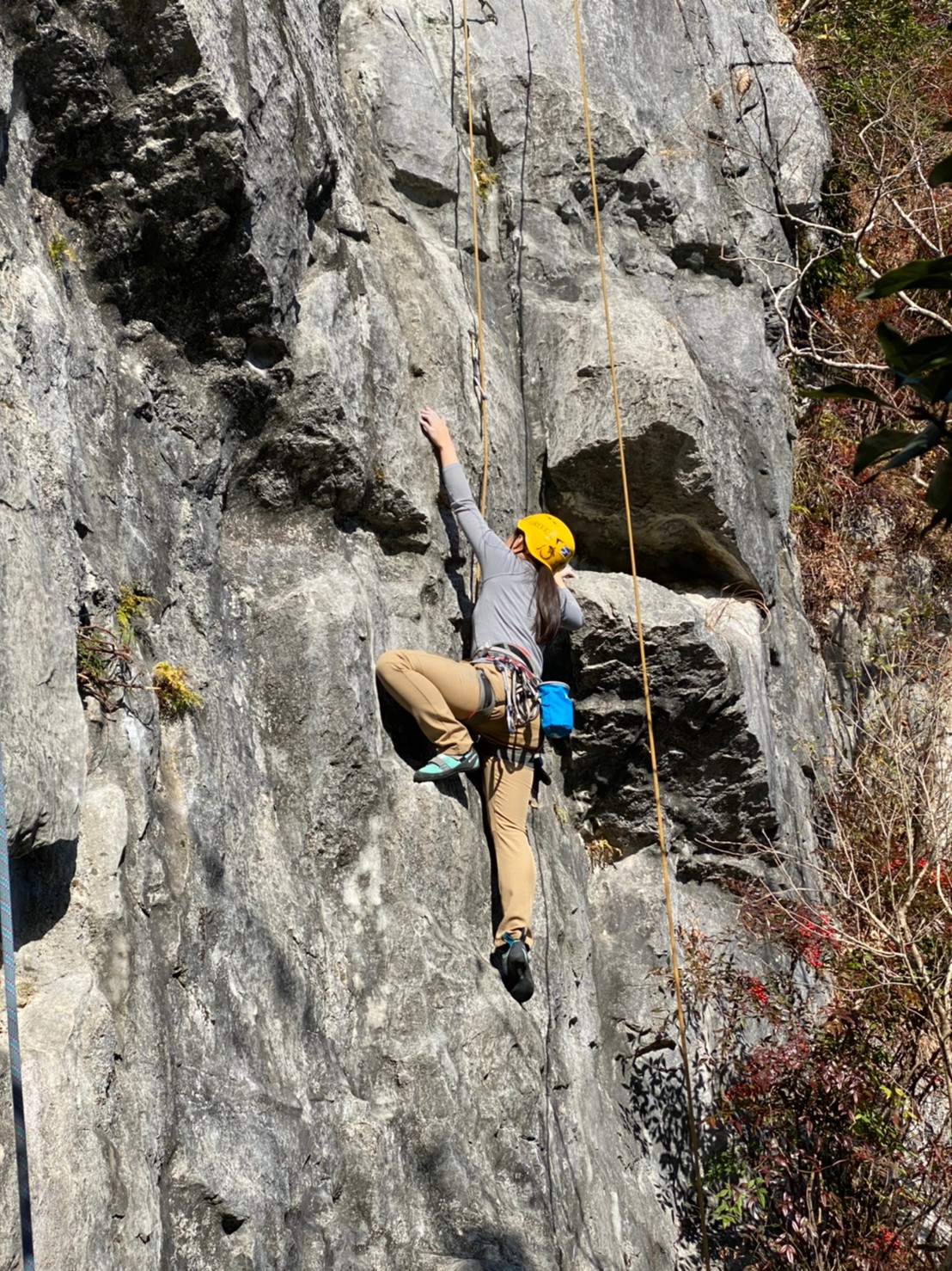 日当たりがよく岩も乾いており、良さそうなコンディション!トレーニングコース?から登り始めました。