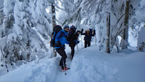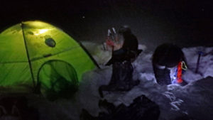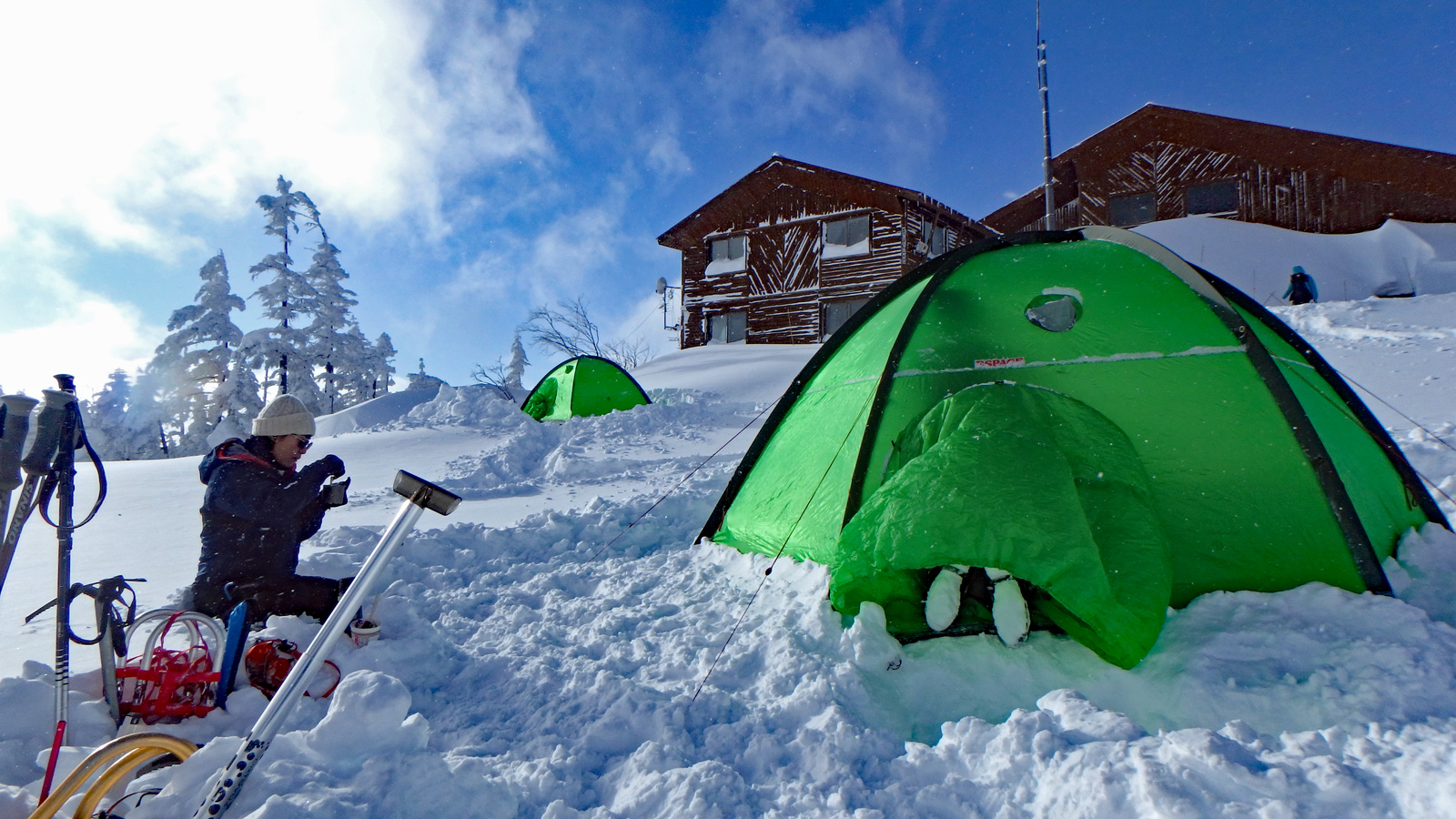 テント設営後に1時間程度の雪上訓練を実施しテント泊