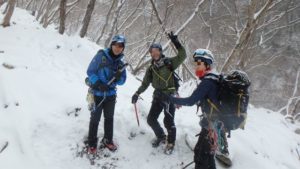 さて、堂満岳中央稜は、今回は雪が薄くて脆い岩に苦労したけれど、初心者がピッケルワーク、アイゼンワーク、ロープワークを習得するには、とてもいい場所に思えた。