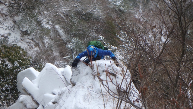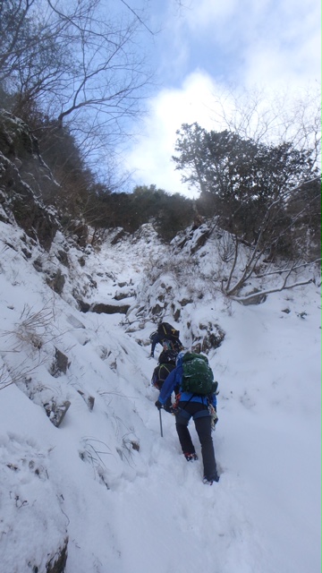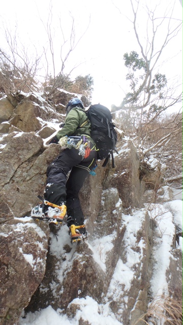 雪は少し降っていたが風はほとんどなく、ギアの擦れ合う音と、ピッケルが石をつく金属音だけが、静かな谷間に響くのが心地よかった。