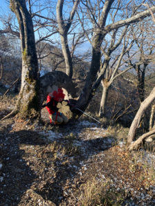 Near top of the mountain, there was some snow and it was frozen, so we decided to wear the crampon.