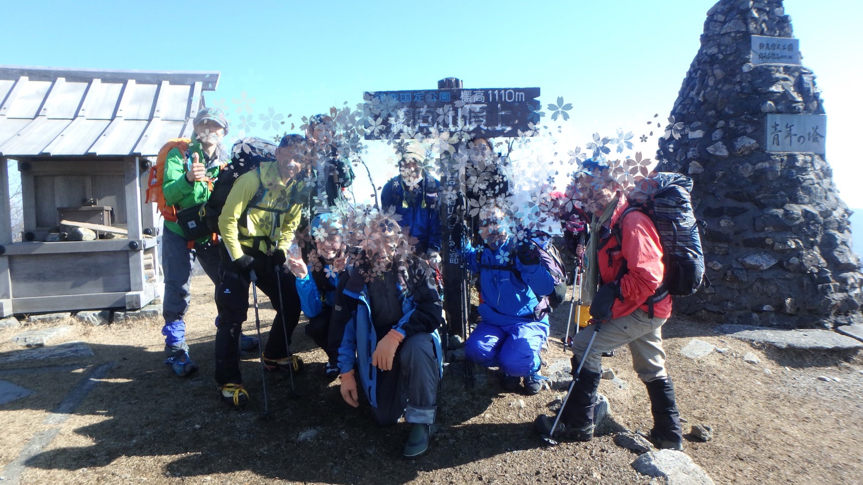 at top of the mountain, we took team photo.