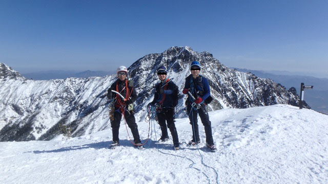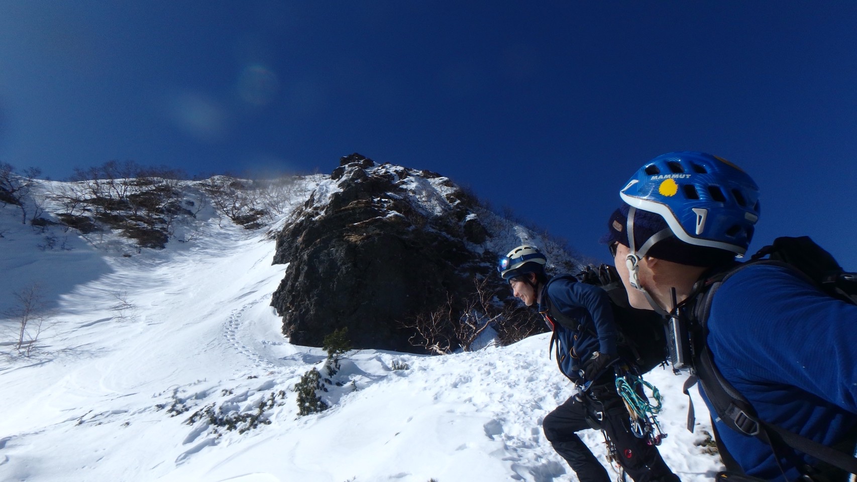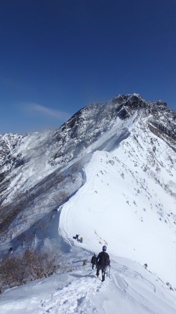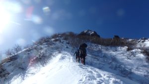 岩稜登攀は結局この2ピッチで終了。あとは急登の雪稜をもう少し頑張れば山頂へ。