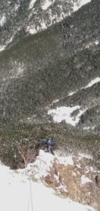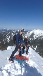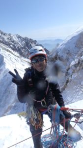 ビレイ中のH藤さん。このビレイのやり方は西穂で習ったぞ!