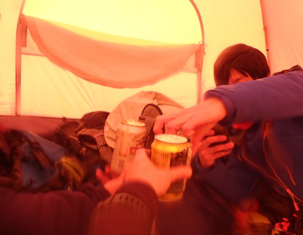 Once we arrived the camping site, Mr. H, our chief leader, had brought beer and whiskey from home! (it was not mentioned in the equipment list.