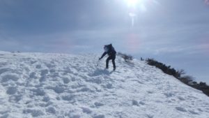 当初の計画では、夏道登山道でピストンし日帰りで帰ってくる予定だった。しかし、M戸さんの提案でまさかの雪稜登攀に挑戦することに。「来季は雪稜にも挑戦したいなぁ。」と思っていた矢先の思わぬチャンスにテンションも上がる。