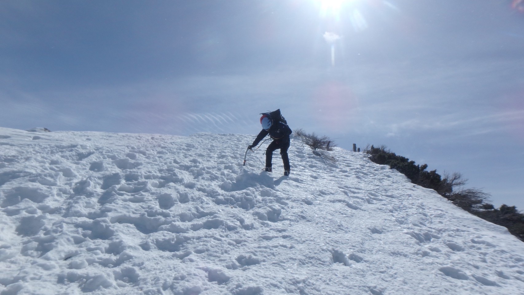最高の快晴!ただ風が凶器レベル。そんなことより隣の尾根が気になって内心ビレイどころじゃない。(もちろんちゃんと仕事はしました。)