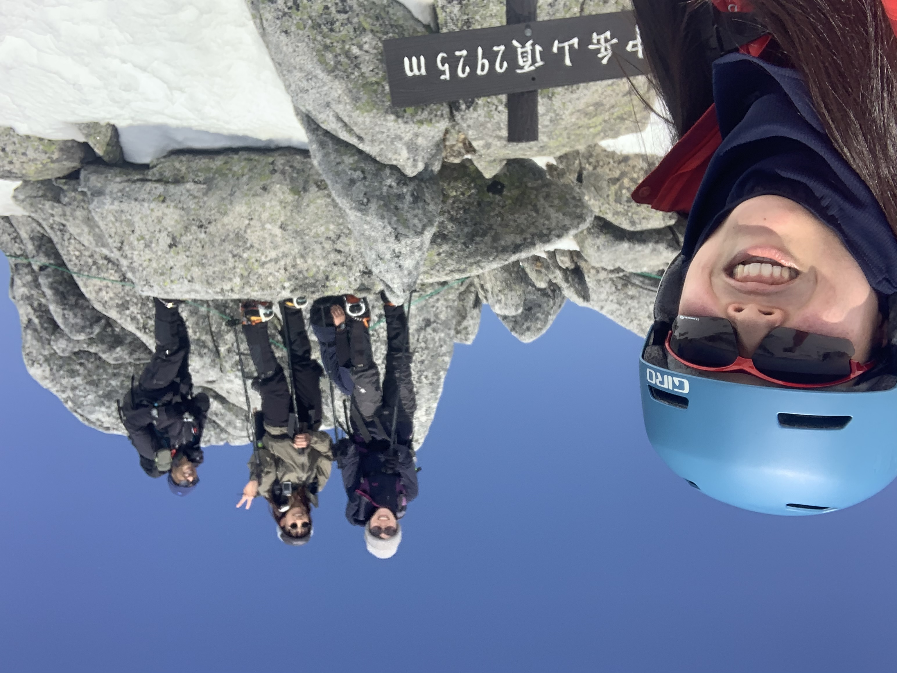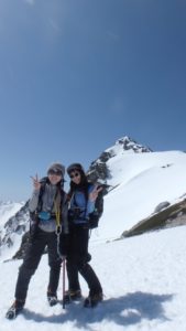Mr. M taught us how to use crampon and pickel (ice axe). Me and Ms. S was our first time to use them, so he taught step by step.