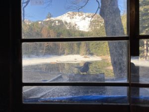 すると、小屋のえさ場になってるところにホシガラスが!!!!!