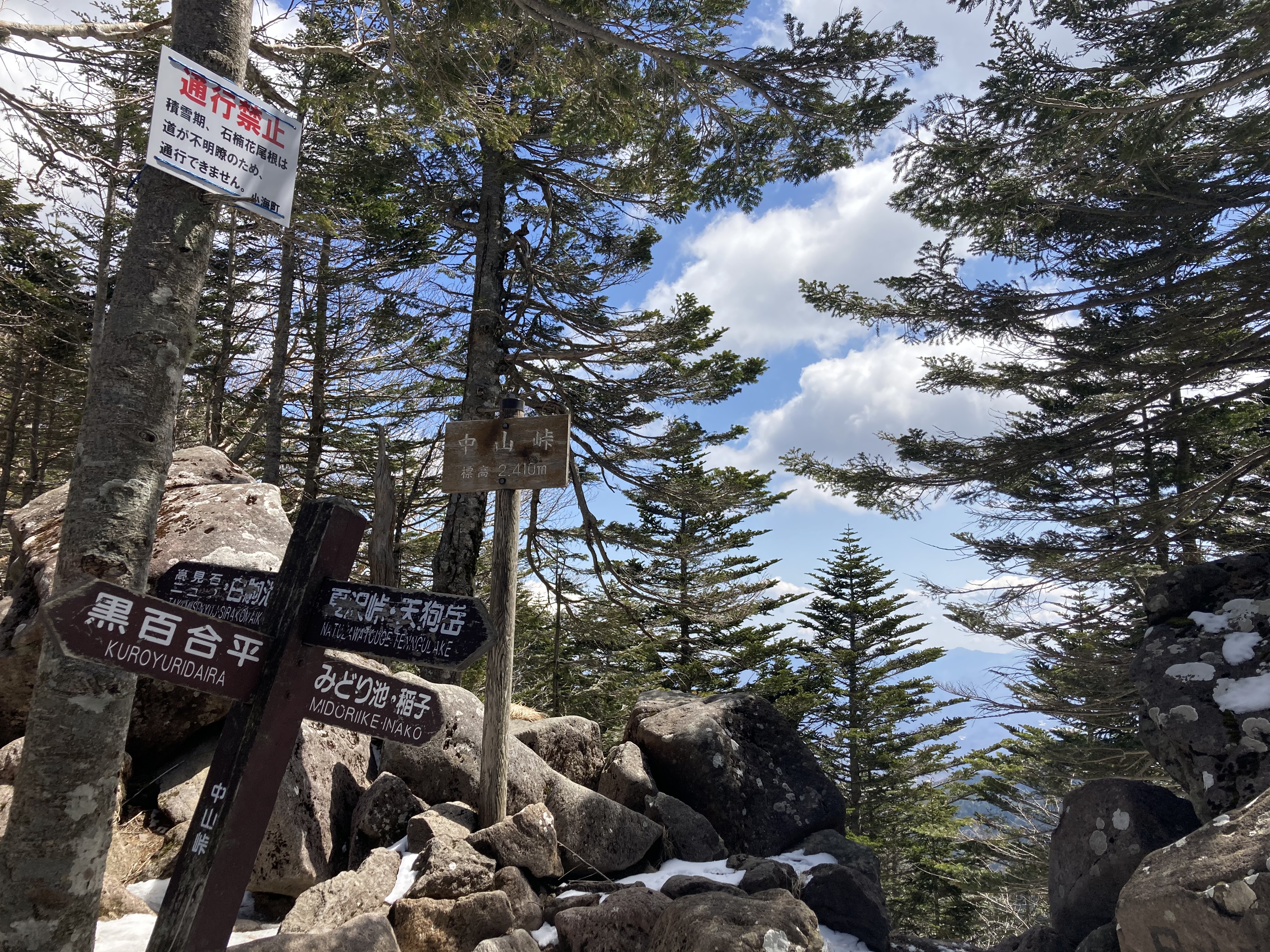 渋の湯 → 賽の河原 → 高見石小屋 → 中山展望台 → 中山 → ニュウ分岐 → 中山峠 → 中山峠分岐→ しらびそ小屋 (1泊)