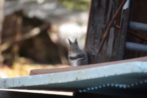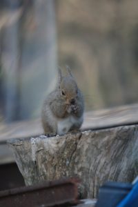 『ご飯だよ〜』との声に小屋に入ろうとしたら、O田さんが急に慌てだす。指差す方にリス発見!!先に小屋に入ったS伯さんもリスをガラス越しに見たのか、慌てて『リス!!』と静かに外に飛び出してきた。