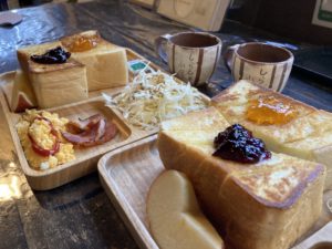 リスに会えて満足して、私たちも朝ごはんへ。