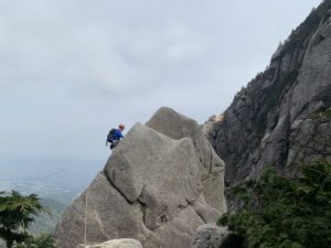 9時過ぎから一の壁を登り始め、2ルート3ルートを登り、12時10分から前尾根登り始め、17時10分にP3に到着して下山