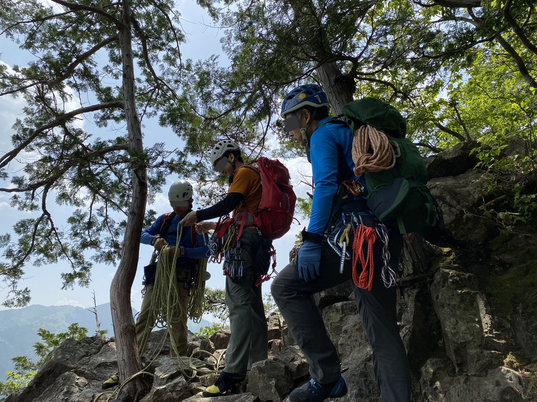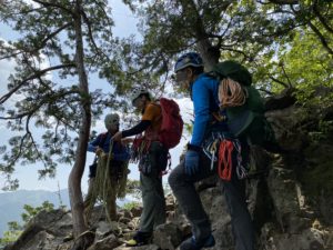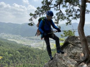 ↑金毘羅山頂で懸垂準備中