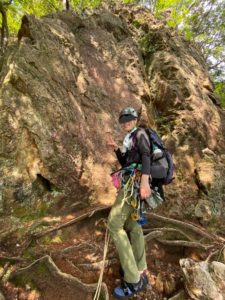 左カンテルート(5.5)をリードで登っていただきました。