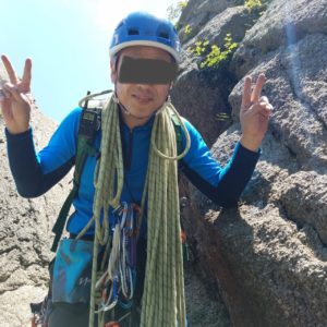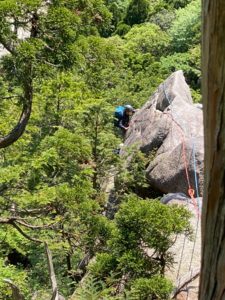 S伯はヤグラに全く登れず、A0とゴボウを駆使してやっと登り切りました。