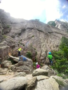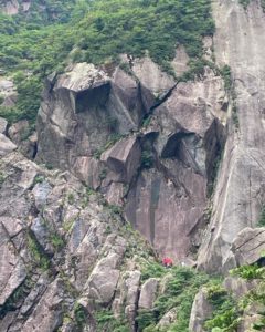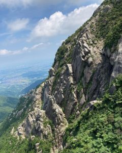 一壁につくと、聞きなれた声が。KO-WALLでお世話になっているK子さんとお師匠様たちが先に登っておられました。ふと前尾根を見るとそちらにもジムでよくしてくださっている方々がいる!急に居心地がよくなりました。みなさん暑い中、頑張ってるんだな~とパワーを貰いました!
