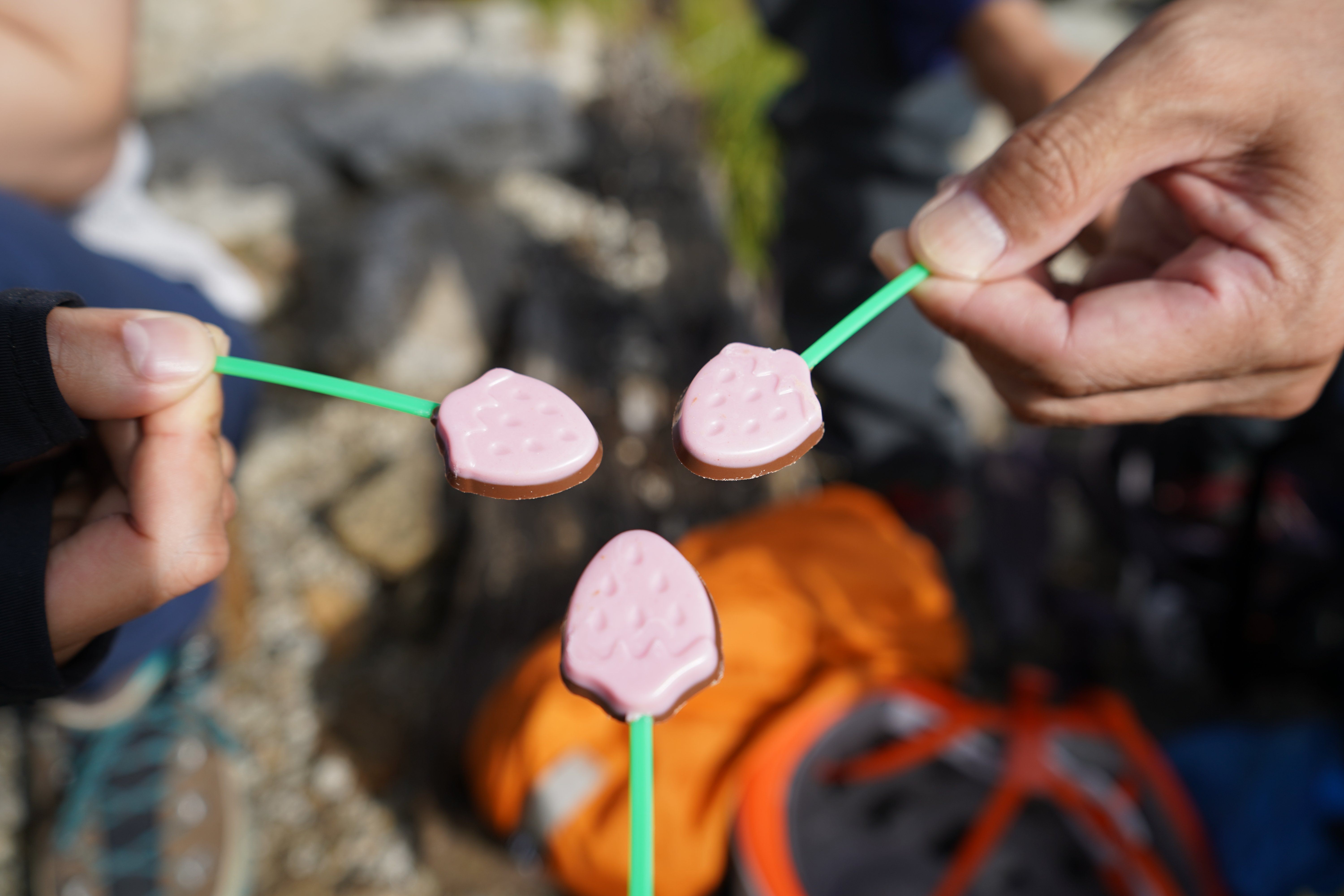 今日は三人ということでイチゴチョコを持ってきました!