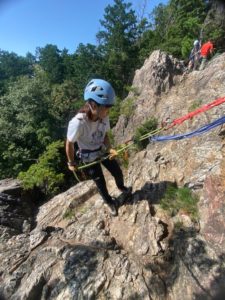 『ノーマルとチムニーそれぞれ登ってアンカー構築してロワーダウンしてきて。チムニーは、最後もう一回登って回収して懸垂で降りてきてね。』と。