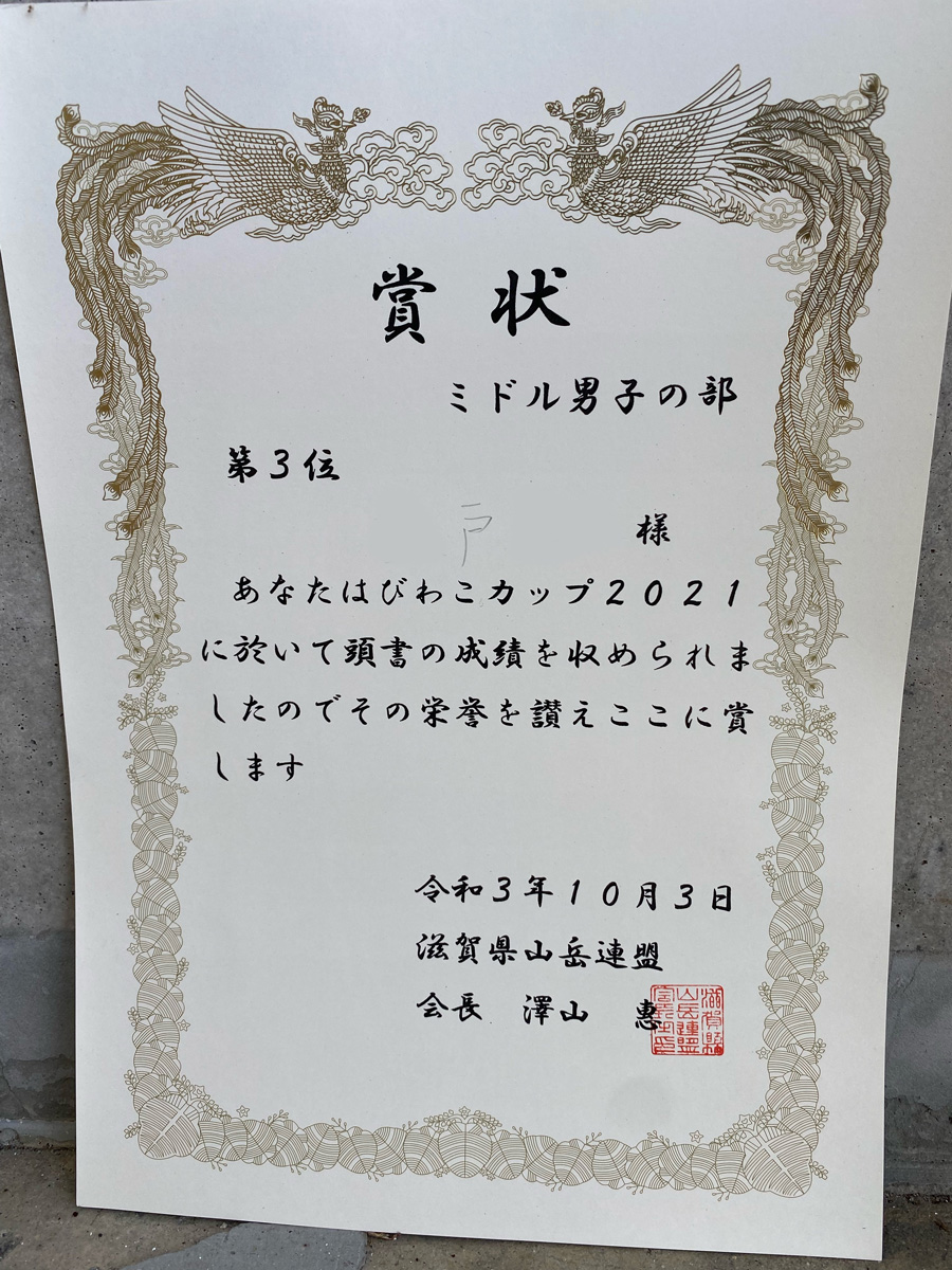 (写真は3位の賞状ですが、後で2位の修正