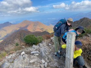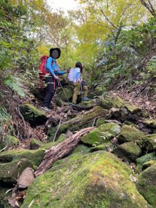 行動時間:(1日目)8:00川床登山口→9:50大休峠→11:00親指ピーク→11:25振子山→12:20ユートピア避難小屋(昼休憩)→13:00三鈷峰→15:00宝珠山登山口→15:50川床駐車場