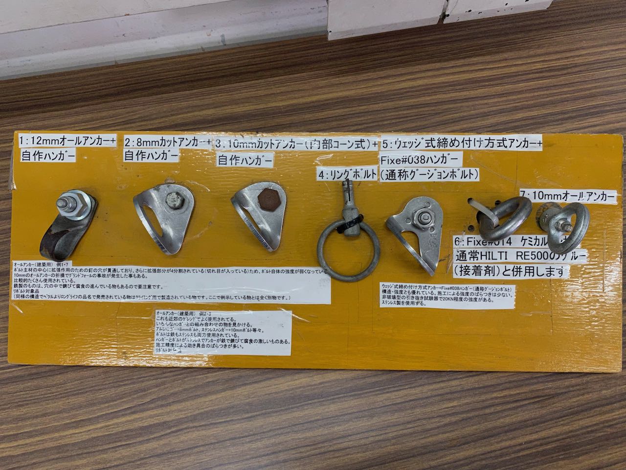 各種アンカーの展示