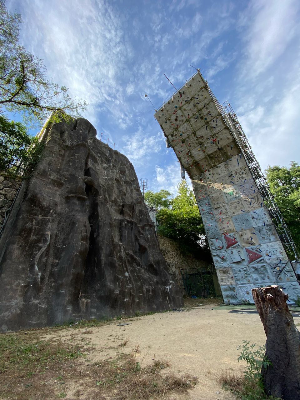 左側がアルパイン想定の練習ができるスラブ状の人工登攀壁
