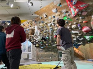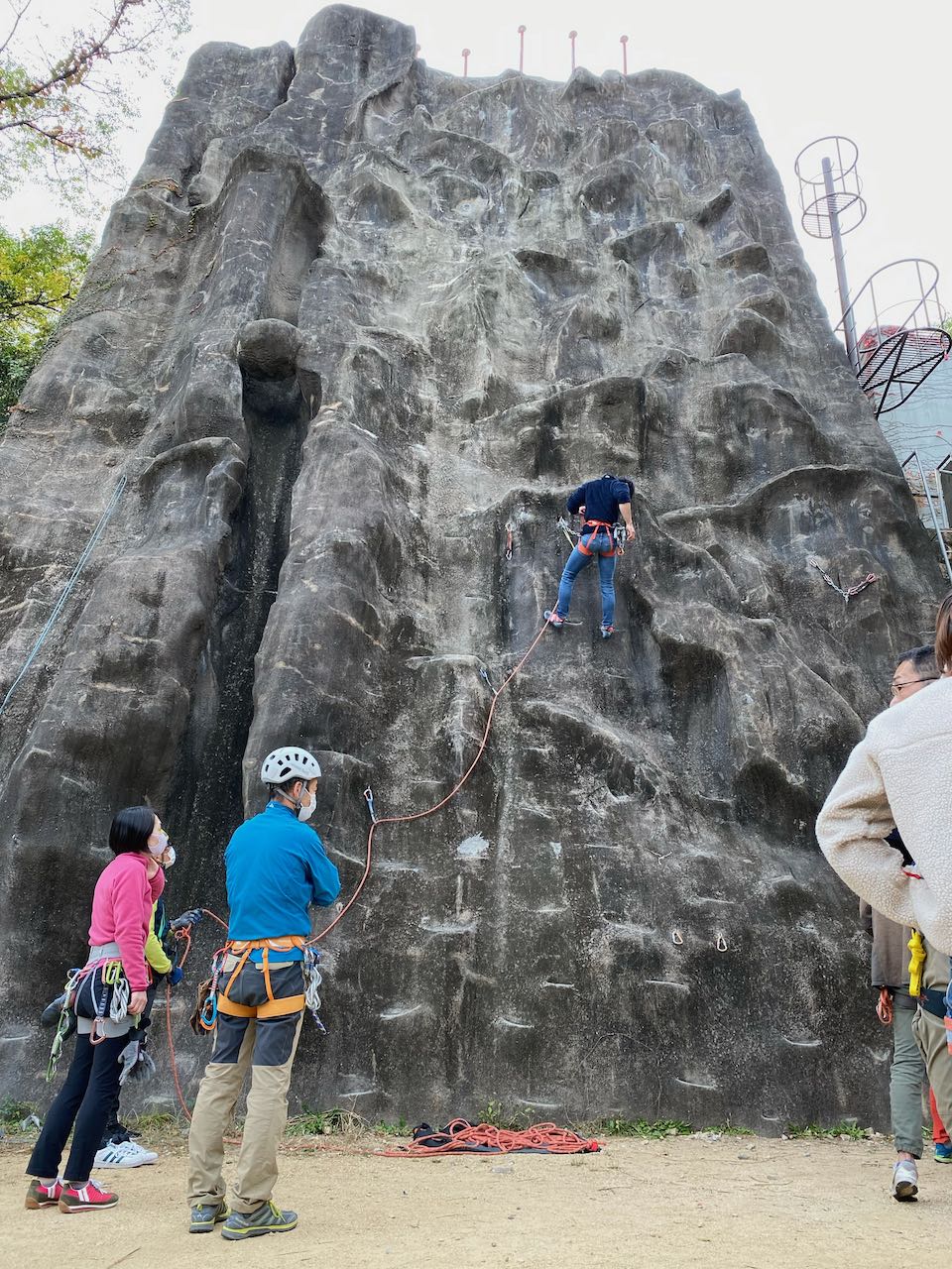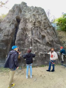 各参加者による人工登攀壁下部での