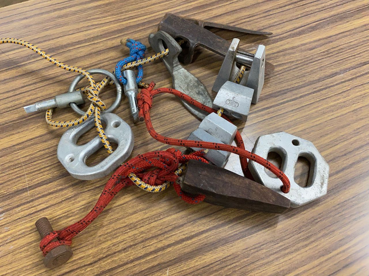 昔のビレイ器具やアンカー等