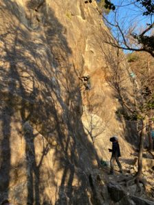 その後、ジパング5.10bを登って、人気ルートのタイムトンネル5.10aへ。