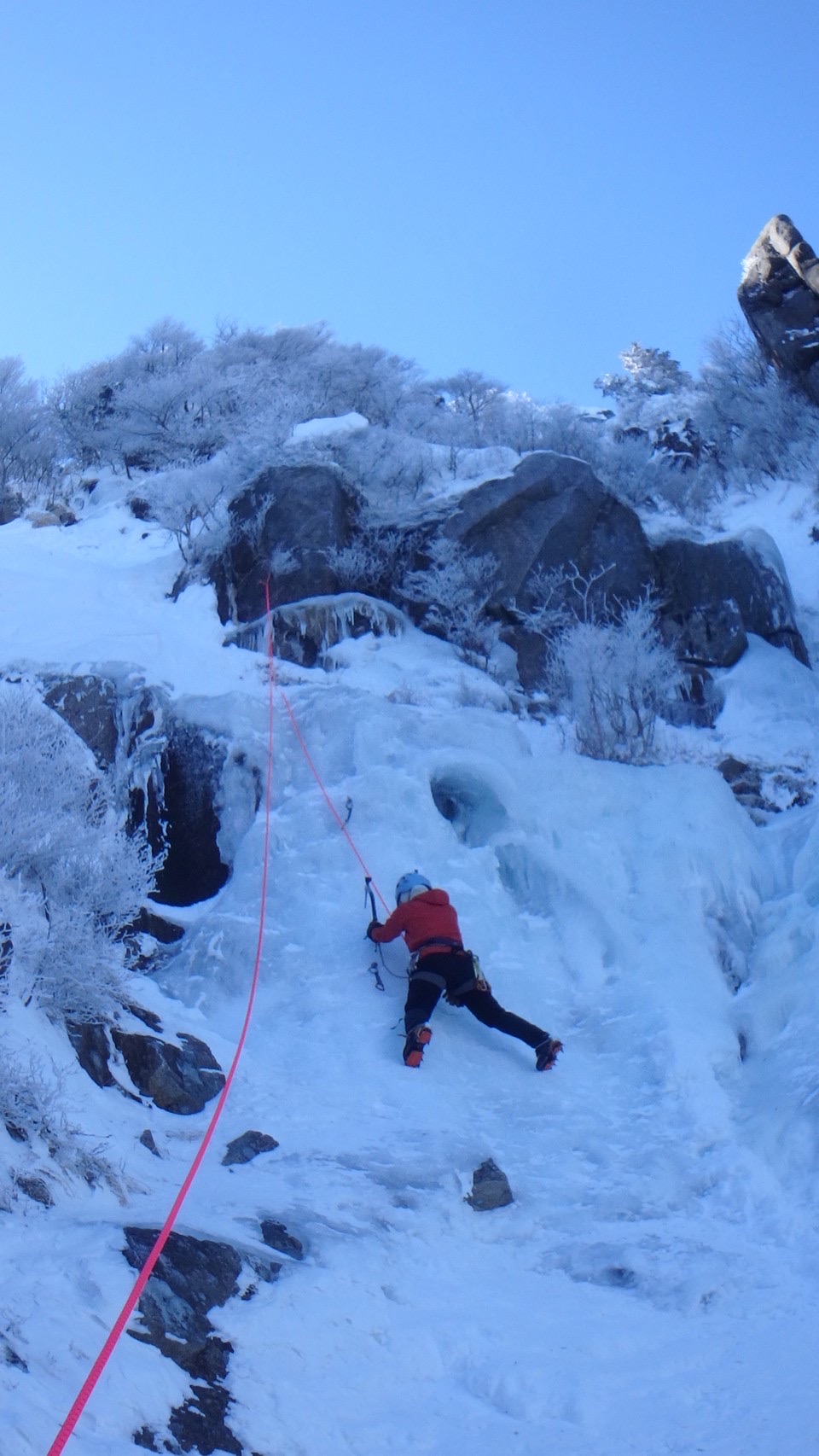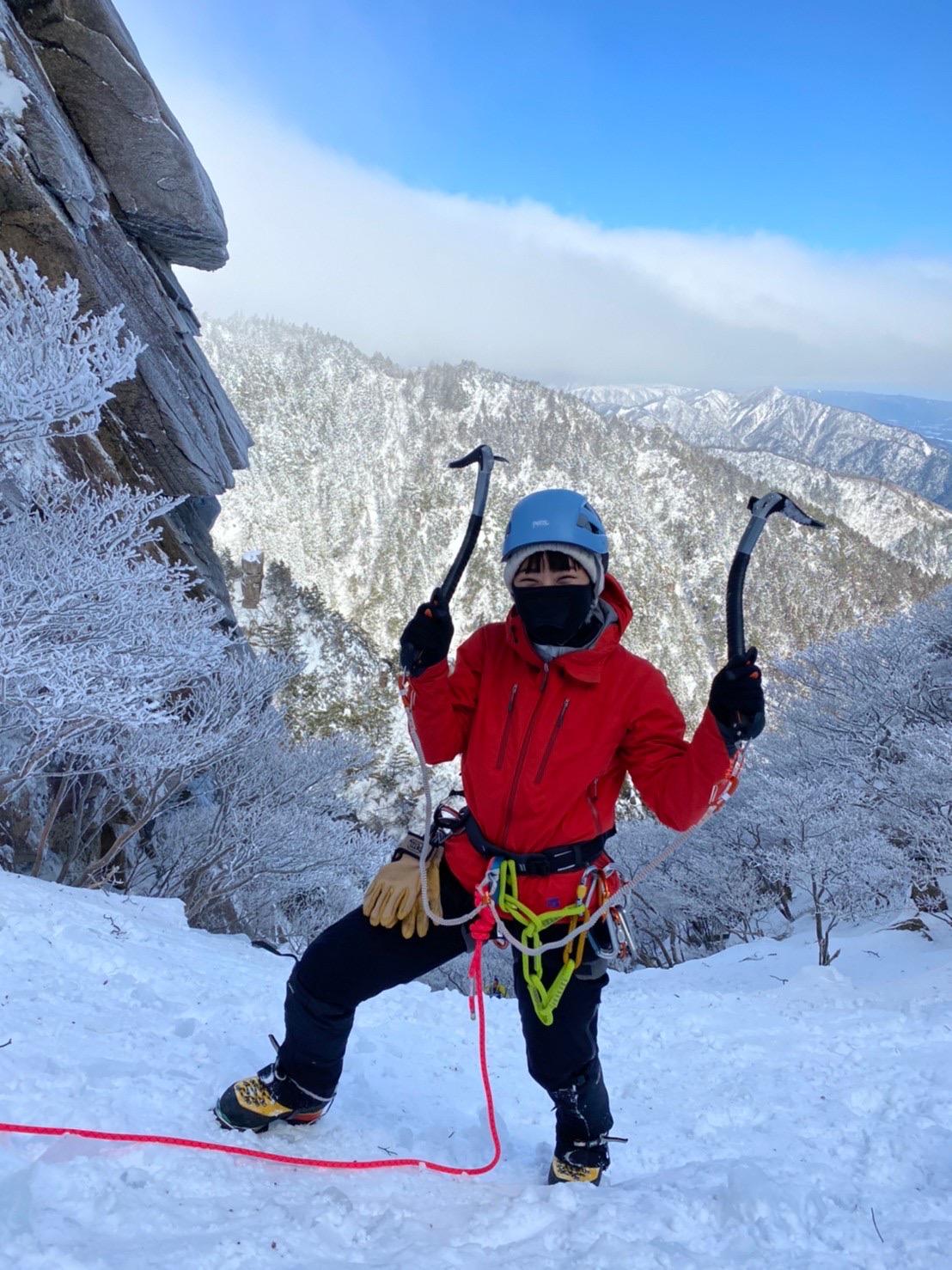 アイスバイルが決まる感じの気持ちよさと、美しい氷を登り切った達成感は最高でした♪