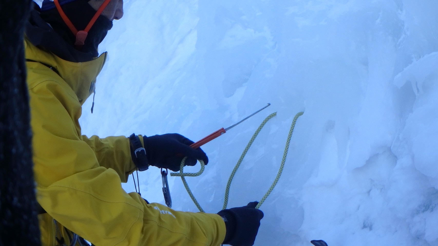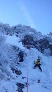 アイスクライミングの基本的な事を色々教えてもらい、何本かトップロープで登らせてもらいました。