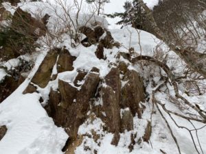 第一ルンゼの分岐もしっかり踏み跡があったおかげで道迷いなし。目印?の堰堤は雪で覆われてなにも見えない。