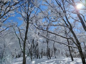 温度が高かったので、霧氷は見れませんでしたが、雪が木によく積もっていて、美しかったです。