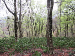 K氏が勝手に名前を付けたブナ平は、丁度良いブナの新緑でした。
