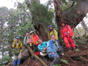 雨は気にする程ではありませんが、風もあり寒いので雨具を着こんで歩きます。