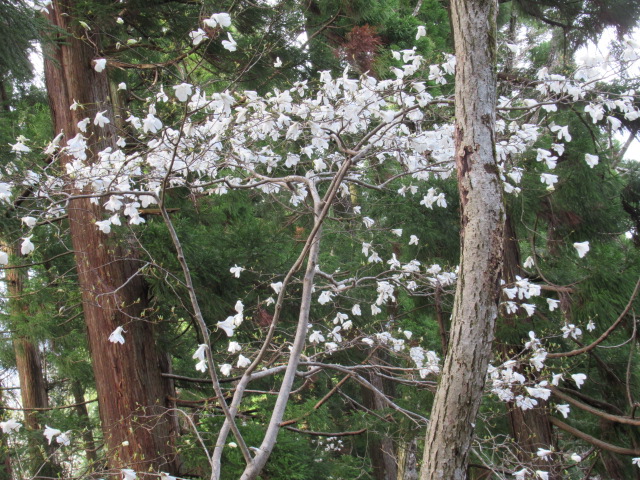 降ります。タムシバはコブシに似た花ですがコブシと違い花の所に葉が有りません。