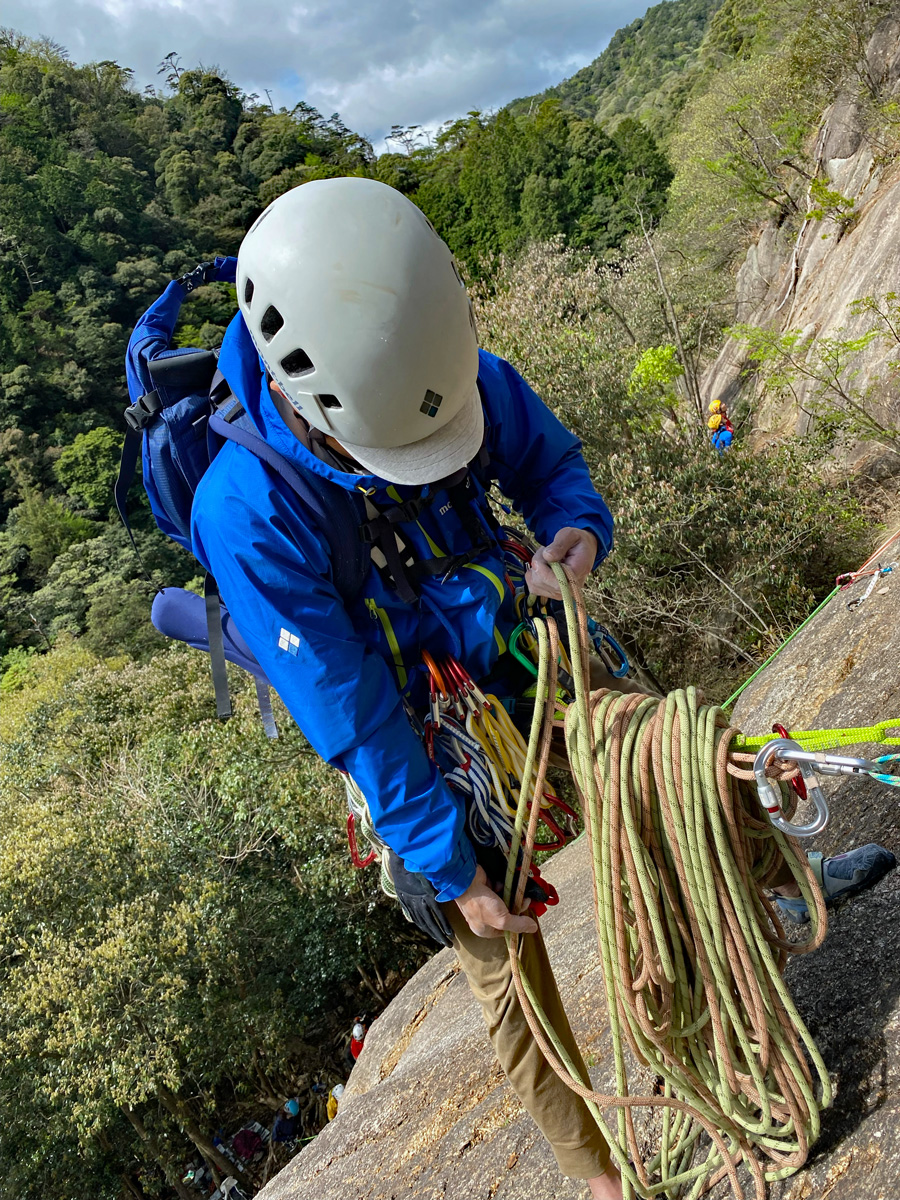 ビレイデバイスを落としてしまったそうです(^_^;すぐさまムンターヒッチでフォロービレイされておられましたが、落としたビレイデバイスを拾う話をしていたので、岩に思いっきり落としたら、見た目で壊れていなくても素材にマイクロクラックが入っている可能性が高いので廃棄した方が良いですよと説明したら、そうなんですか!!と知らないようでした。ベテランさんでも知らないんだ。。。とビックリしました。