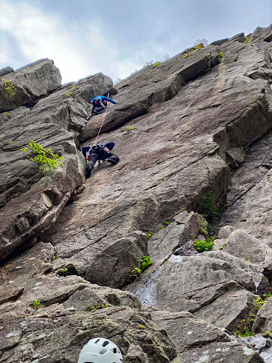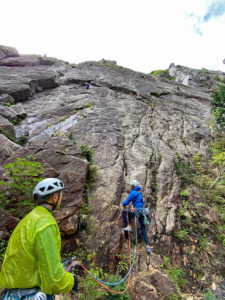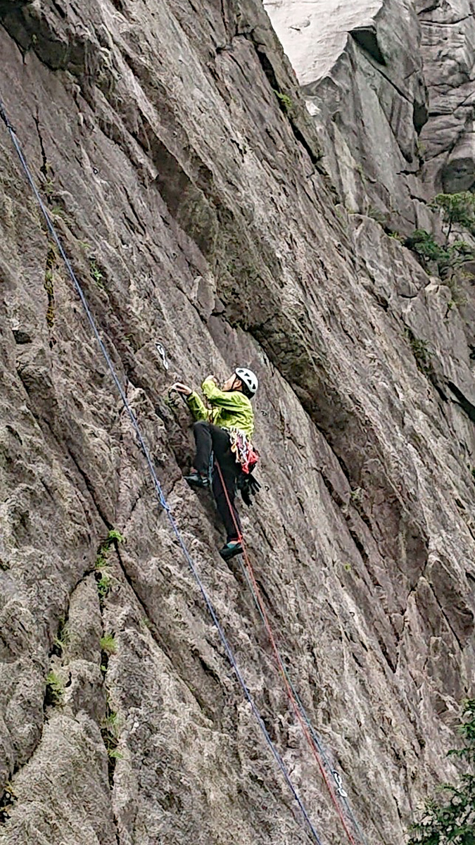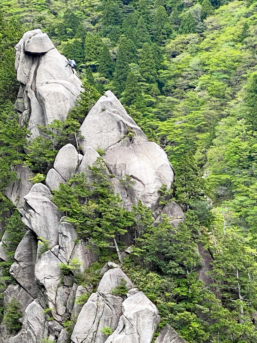 2ルートをフォローで登る青い服のN澤さん