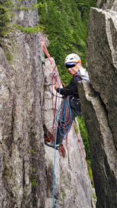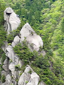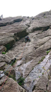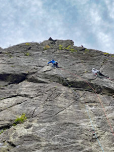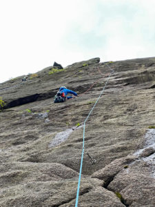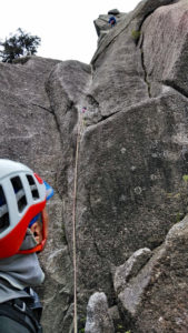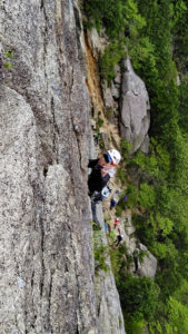 次は、K林さんがダイレクトルートをリード登攀。一の壁で一番高い40m程あるルートです。ハング越えとその上が核心部。