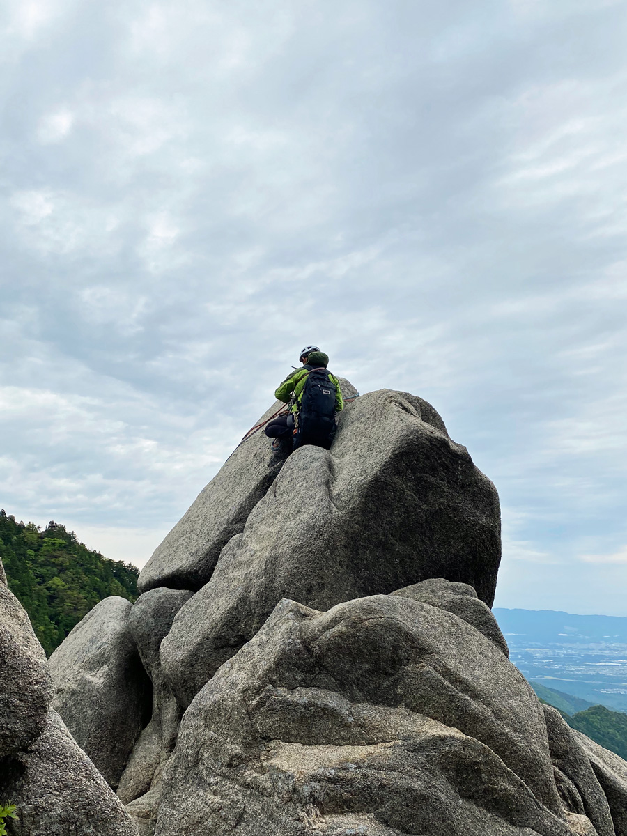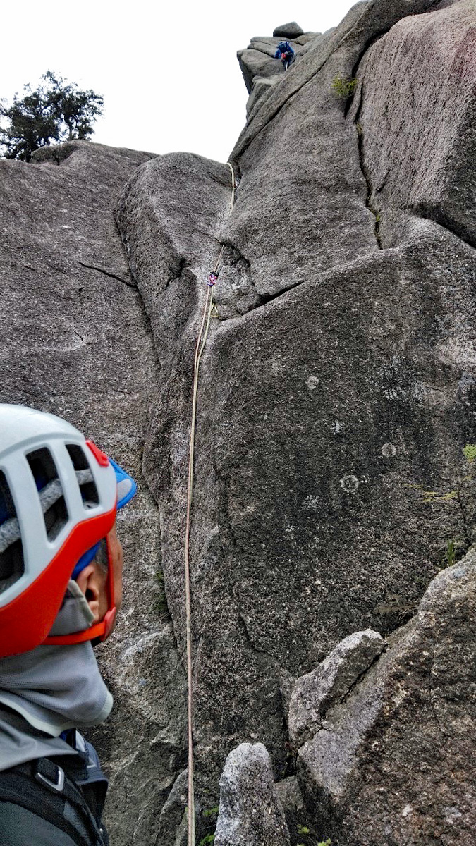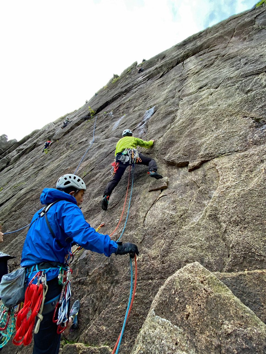 M尾さん、カムセットも行いながらでしたが、時折、中間支点を取るポイントが良くなく、ロープの流れが悪いところがあったところはM戸が指摘しながらの登攀です。場数はまず必要ですが、どこがどう良くなかったか理解しながら、失敗から学んでいくことが大事ですね。