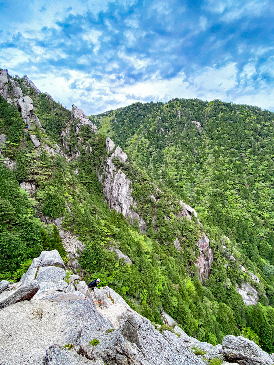 ダイレクトを登ったところで下を見ると一の壁にクライマーがわんさか集合して混雑し始めていました(^_^;