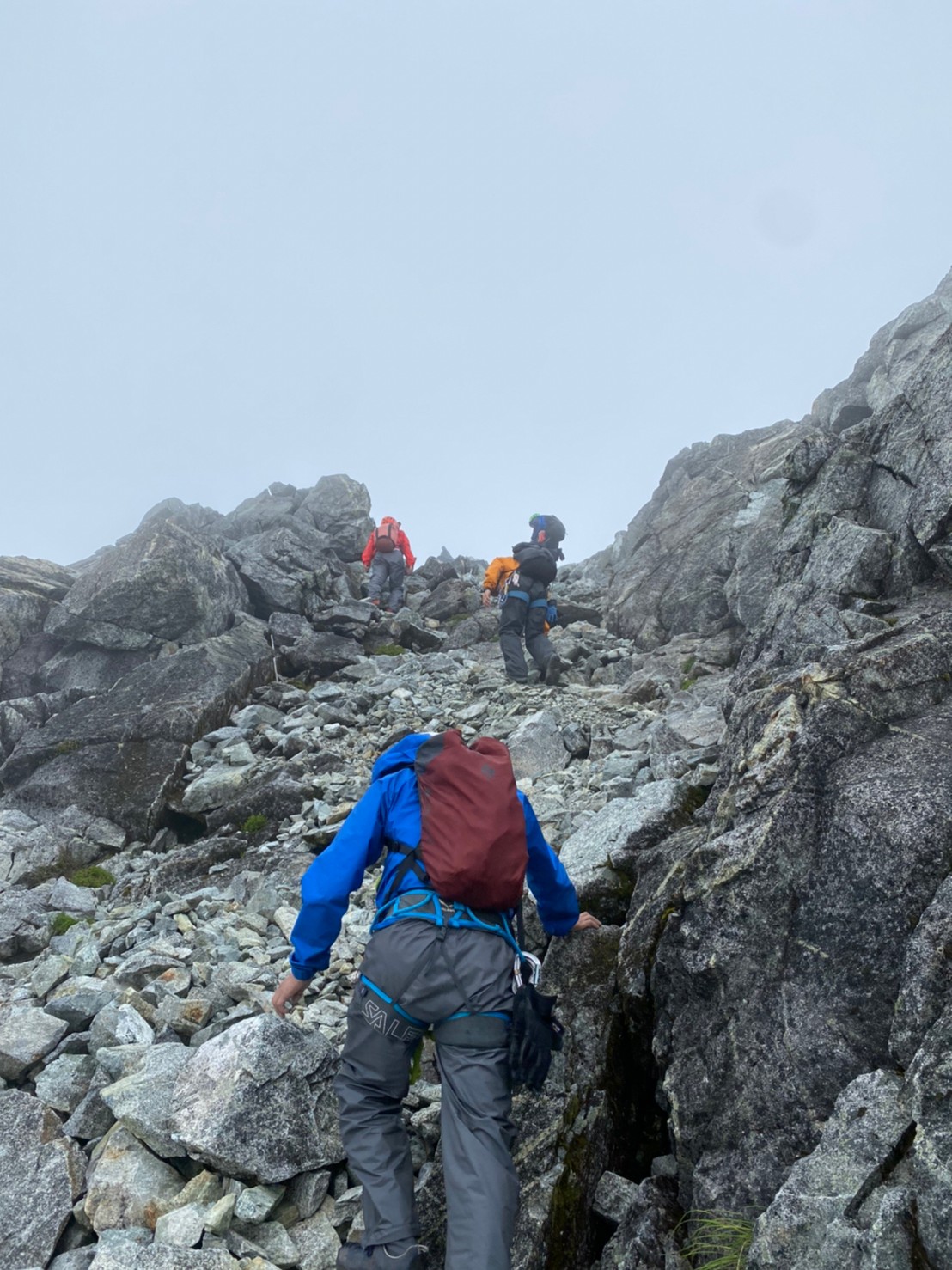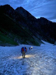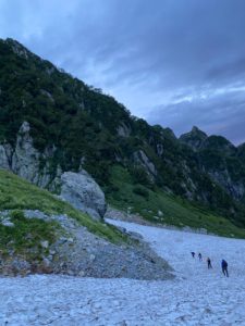 個人的にはしばらく幽霊会員として、在籍しているだけとなっており、振り返ってみたら最後の夏合宿は2014年でしたので、8年ぶりの合宿でした。体力・技術的にも不安がありましたが、勇気を出して参加し、メンバーや会装備にも助けてもらい、N澤さんとともに、剱岳初登頂となりました。