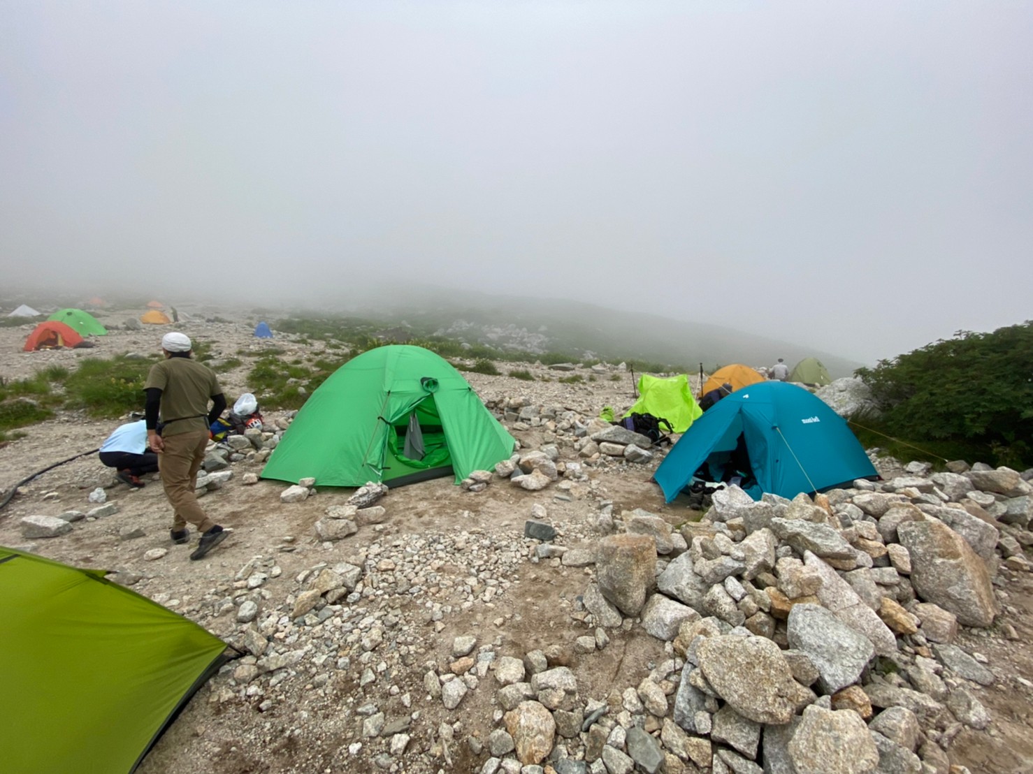 テント設営だん。左会6テン3人、中個人ツエルトK林さん、右個人1~2テンN澤さん
