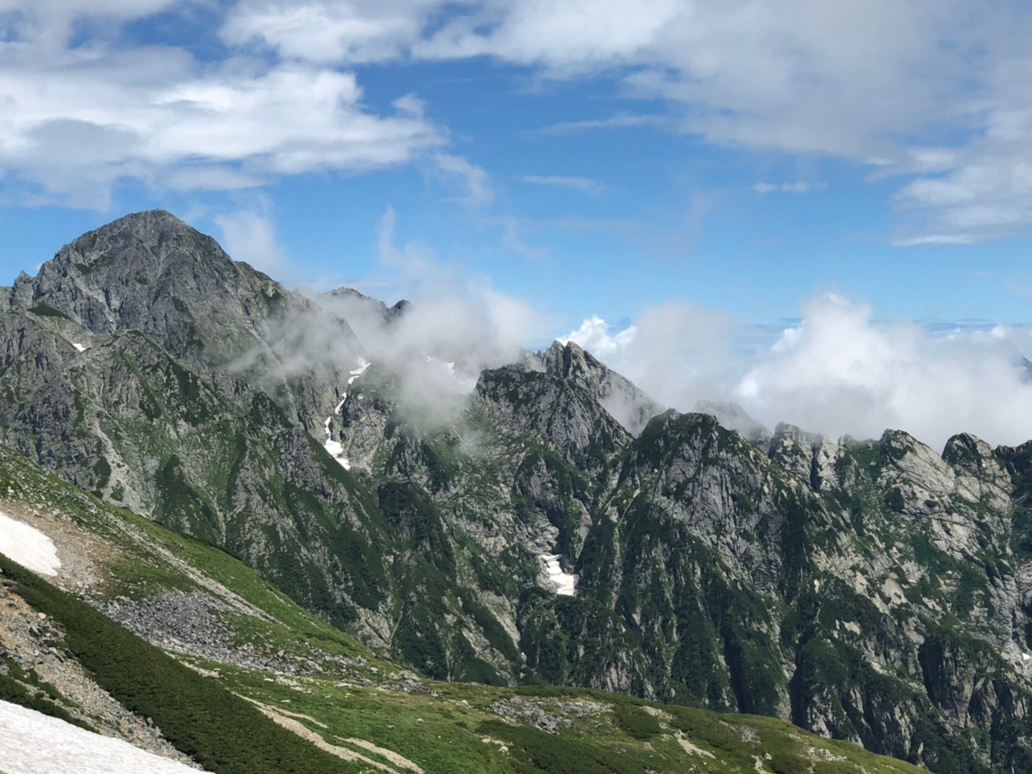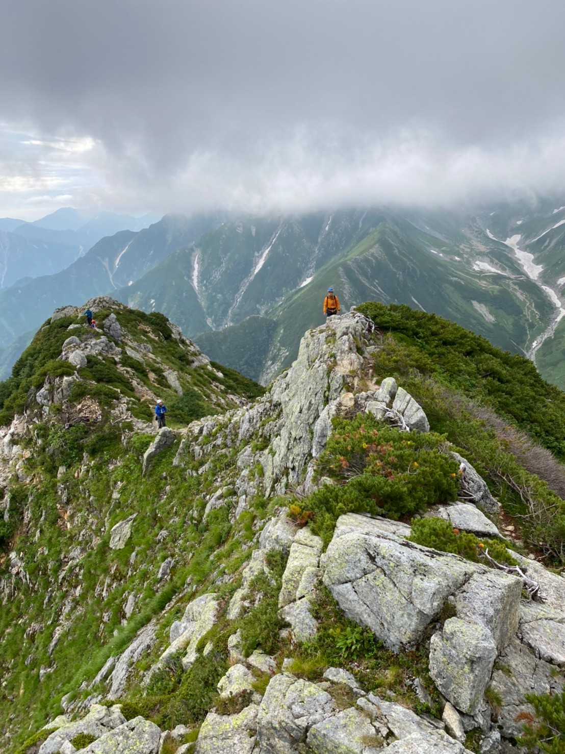 事前計画では、2隊に分けⅯ戸・F谷は登頂後そのまま剣沢キャンプ場へ下山、残り3人は天候・体力等の状況でいければ+α南壁登攀(平蔵のコル時点判断)としていたが、山頂天気予報で雨雲接近や、やはり今後の崩れ傾向確認され、概ね南壁登攀はパスの印象。