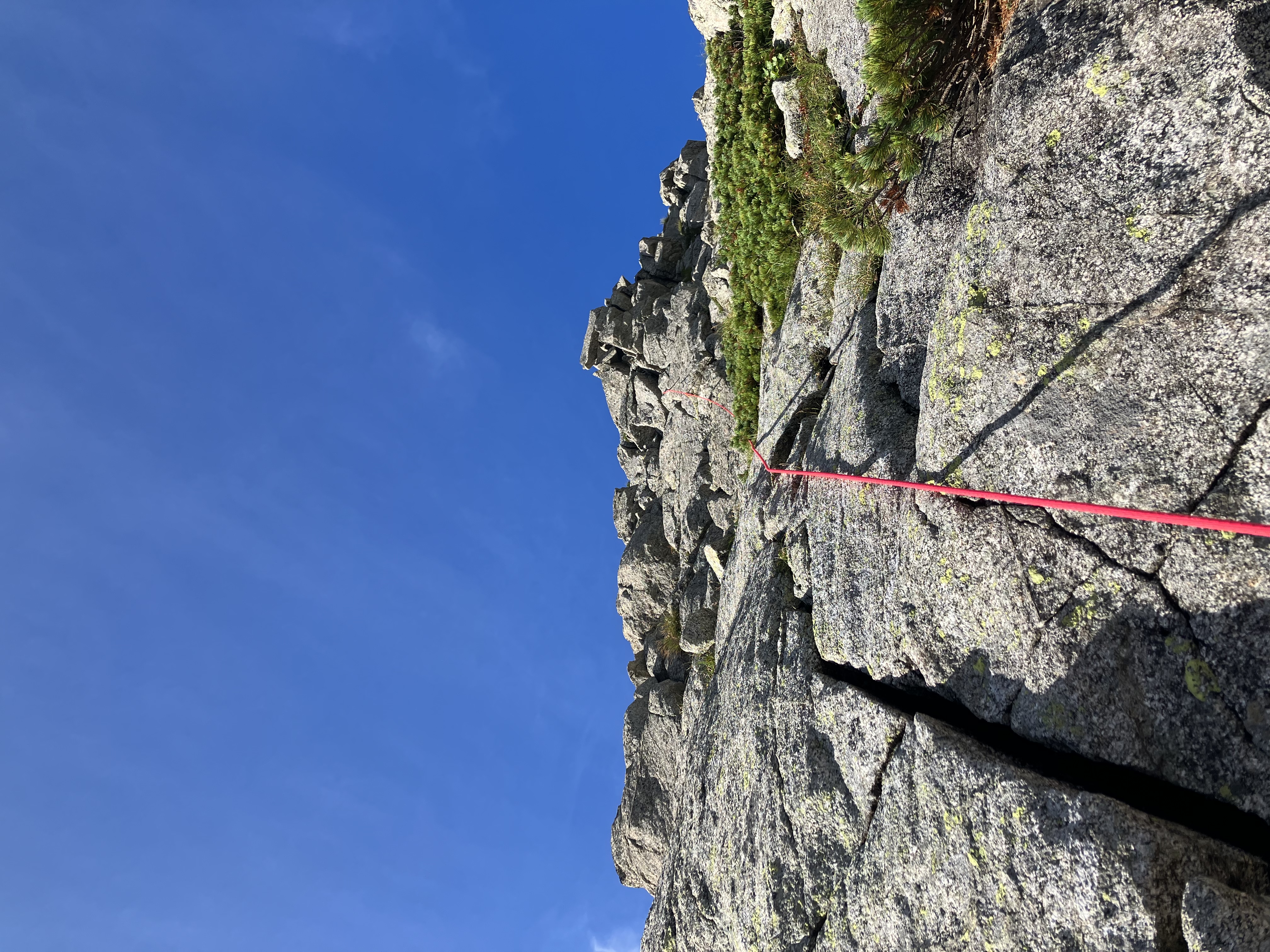 実質最終ピッチで、ロープなしでガンガン登ってきた後続のパーティーに追いつかれる。